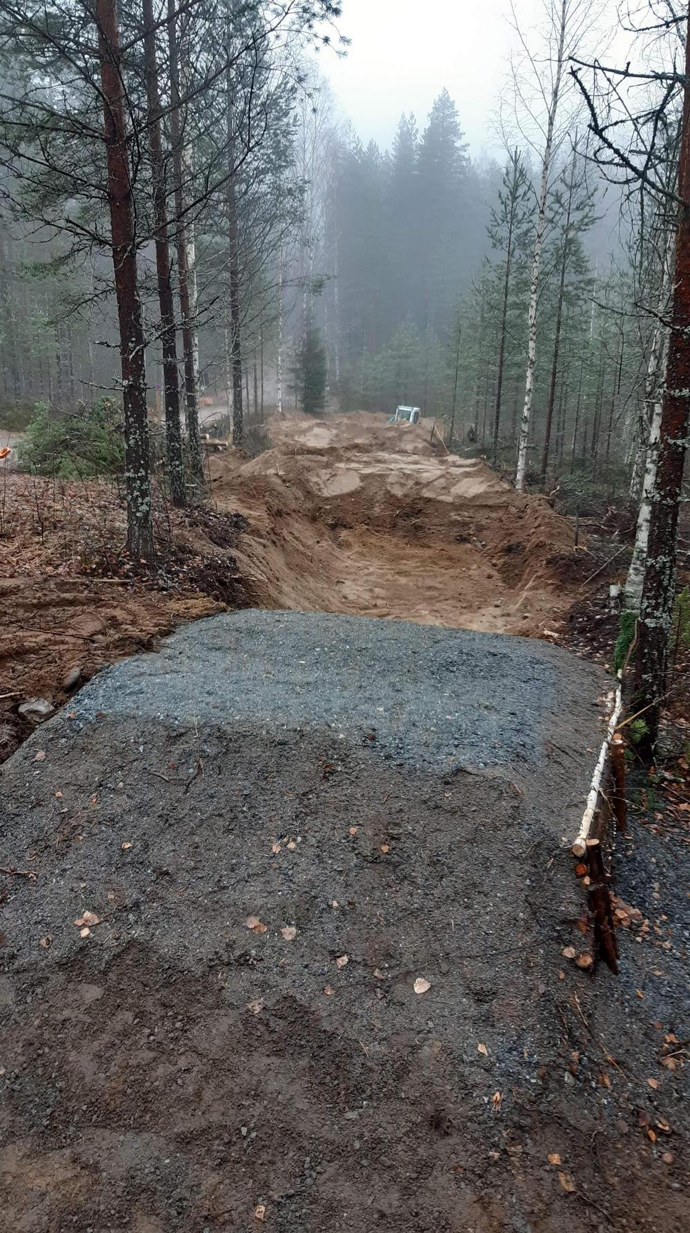 Ja ens keväänä päästään rakentamaan ainakin hyppylinjaa, nyt sinne on kaivettu pohjat odottamaan hyppyreiden muotoilua ja sorastusta. Ja onhan reitit vielä edelleen auki, eiku ajamaan 🤘