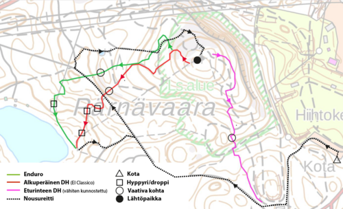 Haluaisitko kokeilla alamäkiajoa mutta et ole varma osaatko ja uskallatko? Kuulostaako sanat Downhill ja Enduro hyvältä? No hyvä! Pärnävaaran alamäkireittejä on nyt kunnostettu. Paikan päällä on ollut puuhaamassa keväästä lähtien kourallinen aktiivijäseniä: on kunnostettu ja suunniteltu olemassa olevia alamäkireittejä sekä visioitu uusia Liperissä alkaneen Pyörällä Poluille -kehittämishankkeen avuksi. Tavoitteena on ollut saada reitit siihen kuntoon, että paikalla pystytään turvallisesti ajamaan ja järjestämään yhteisajoja. Yhteisiä keskiviikkoajoja silmällä pitäen on talkoiltu pari kertaa isommalla porukalla ja kasattu esimerkiksi uusia hyppyreitä.